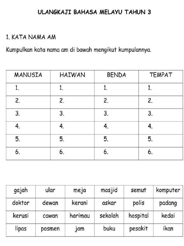 Lembaran Kerja Kata Nama Ma Pdf
